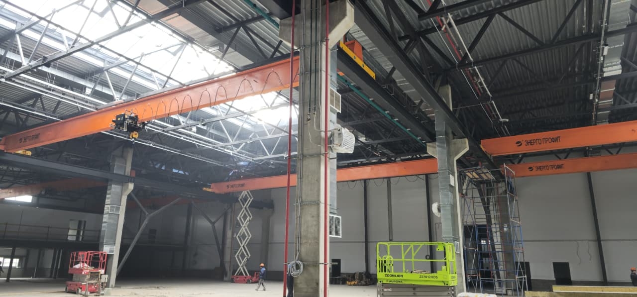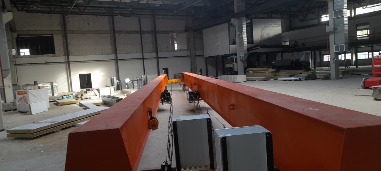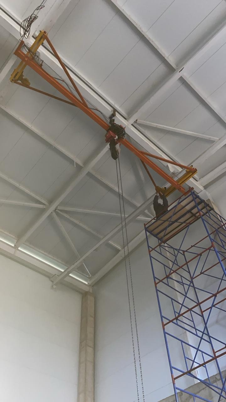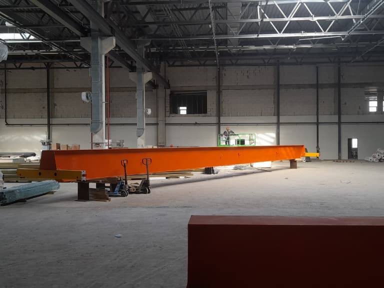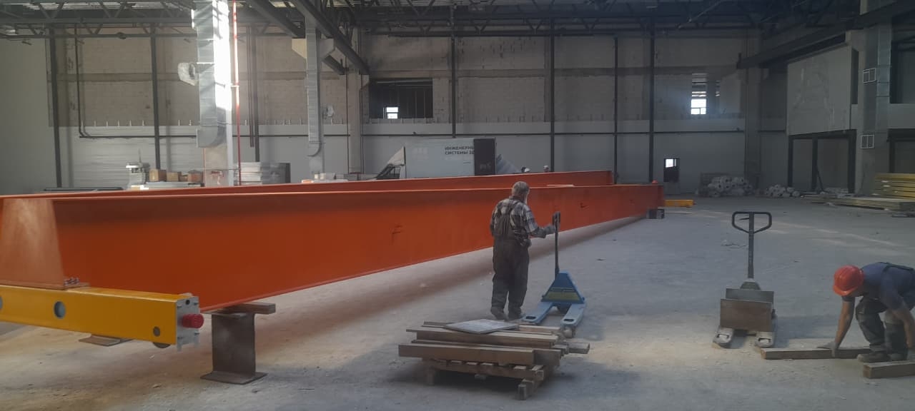 Монтаж кран-балки с китайскими комплектующими. Мост крана изготовлен индивидуально для заказчика, для увеличения высоты подъема.