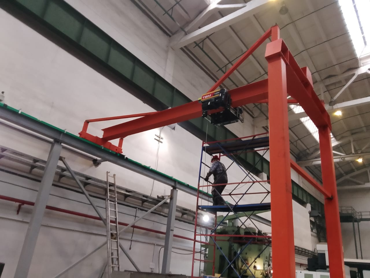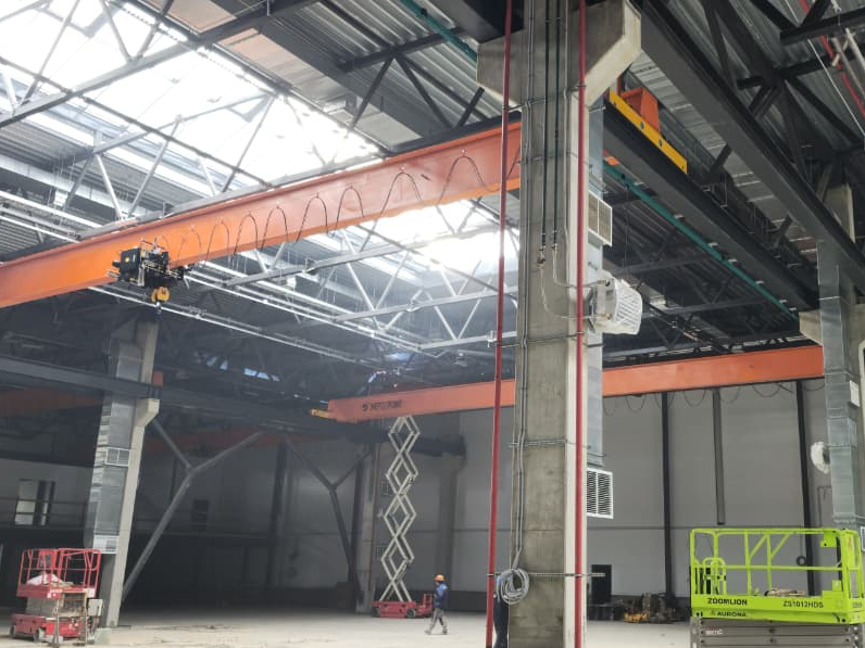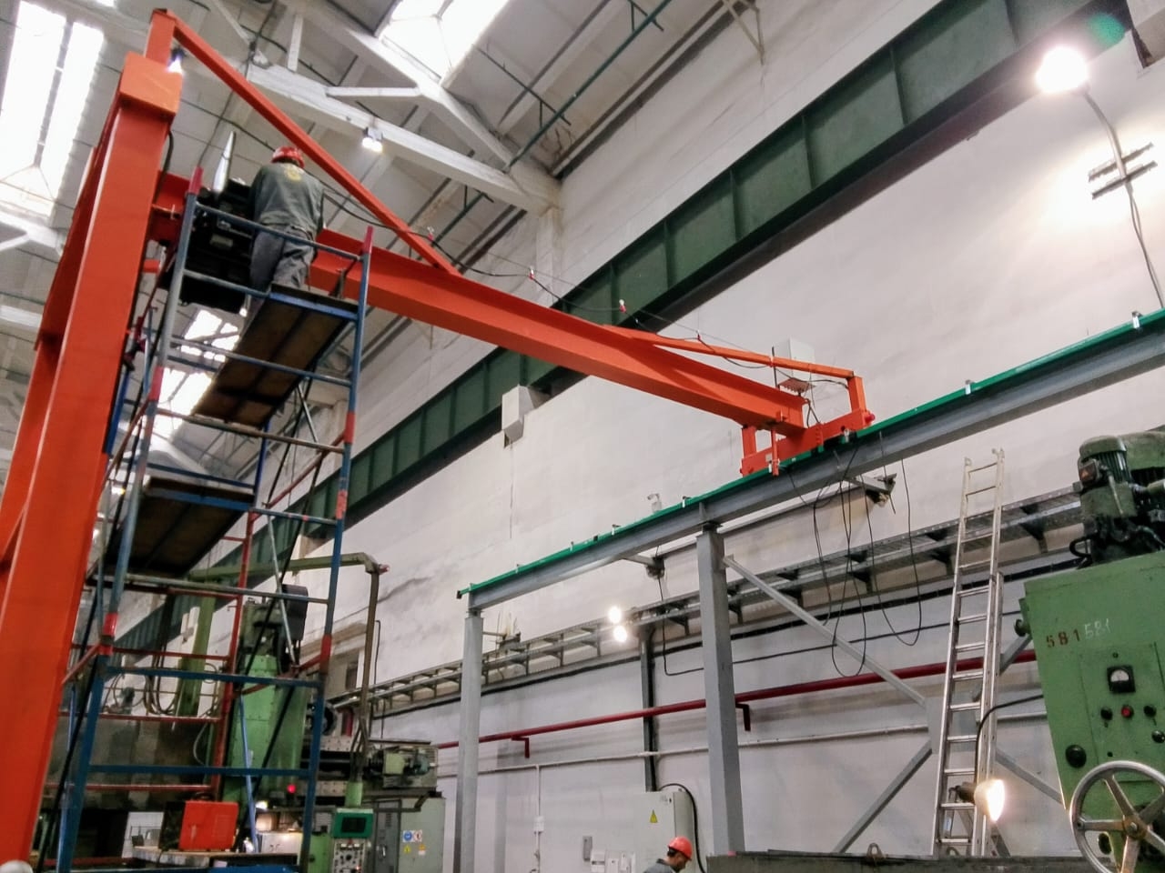 Монтаж кран-балки с китайскими комплектующими. Мост крана изготовлен индивидуально для заказчика, для увеличения высоты подъема.