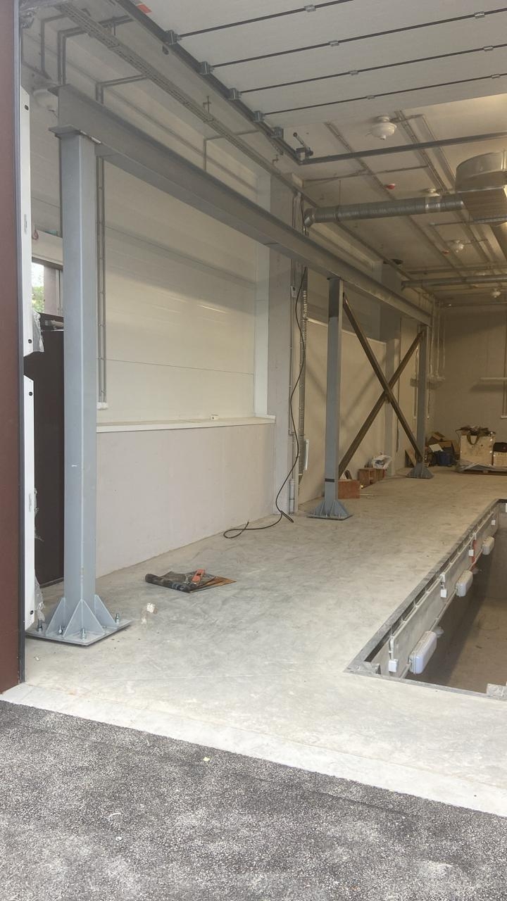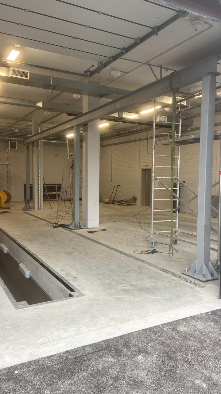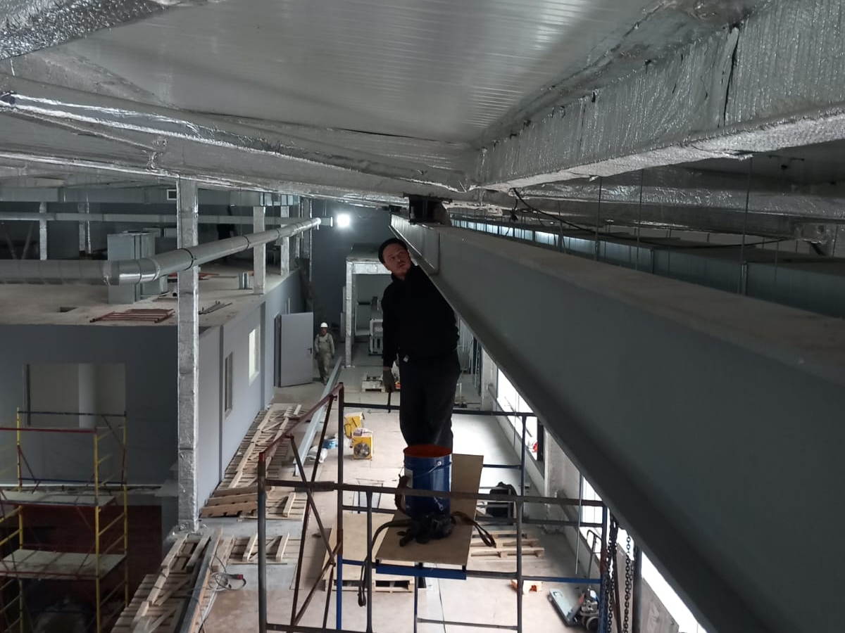 Выполнен монтаж опорного крана г/п -3.2 т. Во время монтажа выявлены и исправлены дефекты планово-высотного положения подкранового пути.