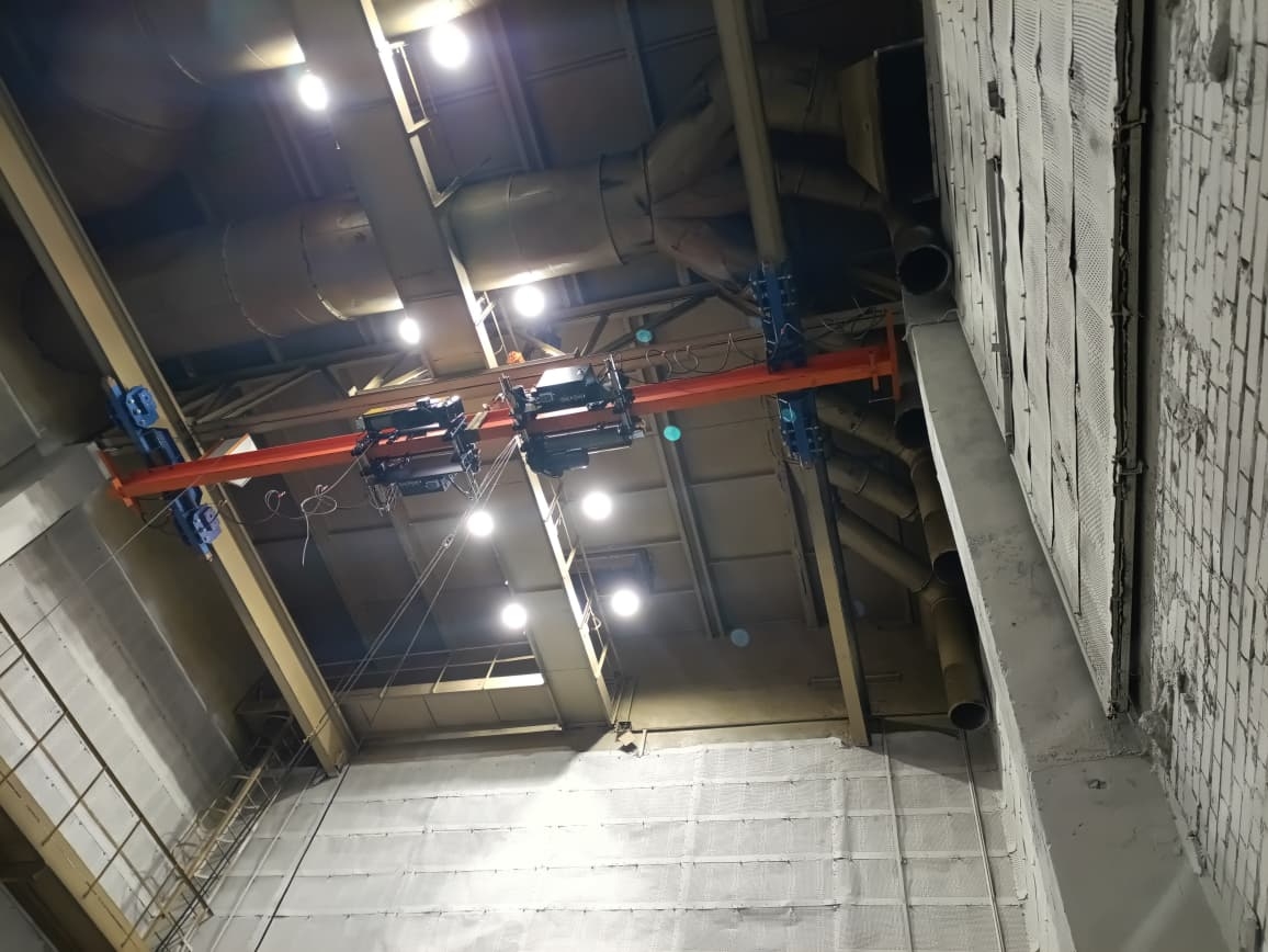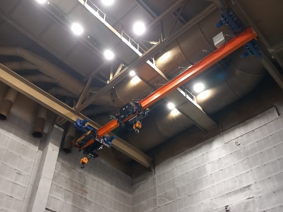Проведение испытаний после завершения монтажа крана и тали HADEF 29/06 EE со сверхмалой (для г/п 3,2т всего 213мм) высотой подъема. Уникальная таль.